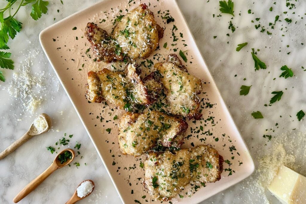- These chicken thighs are packed with flavor from garlic, parmesan, and herbs.