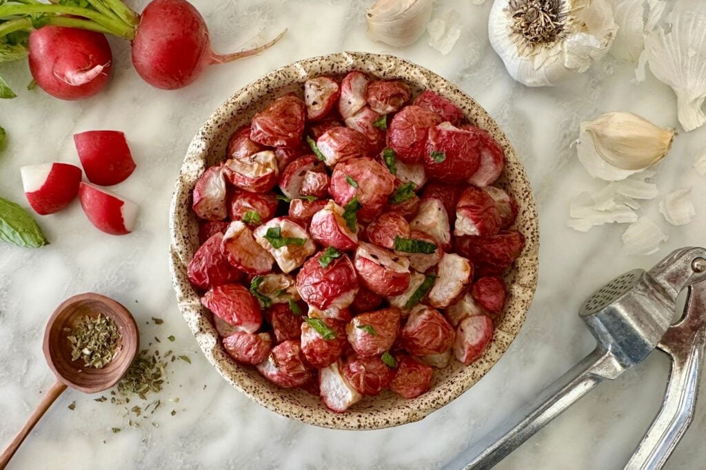 • Garlic: We used fresh cloves of garlic to add the most flavor to these radishes. We recommend using fresh garlic in this recipe for the best flavor, but if you don’t have any, you can use 1/4 teaspoon of garlic powder.