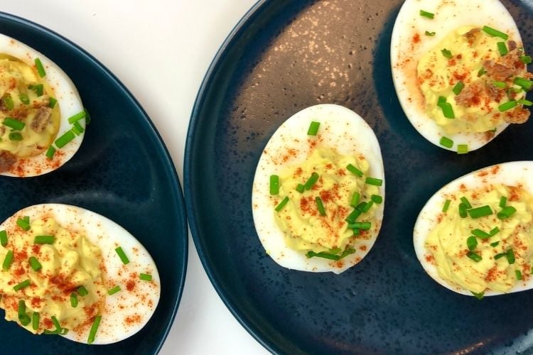 Feel free to add any toppings you would like to these deviled eggs and enjoy! We like adding combinations of chives, bacon, and smoked paprika to our deviled eggs. Let us know what you like to add to your deviled eggs in the comments below!