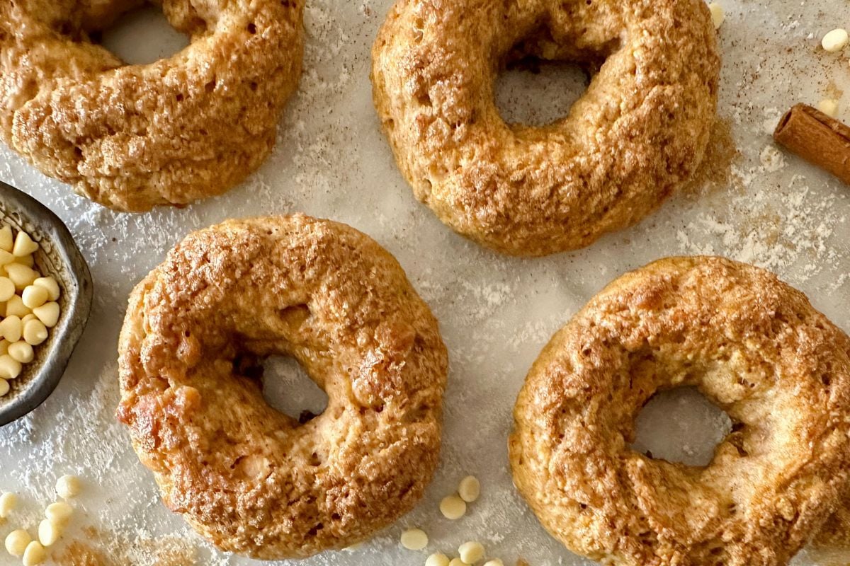 - White Chocolate Chips: Mini white chocolate chips are incorporated into the batter to mimic the flavor of the classic Panera cinnamon crunch bagels.