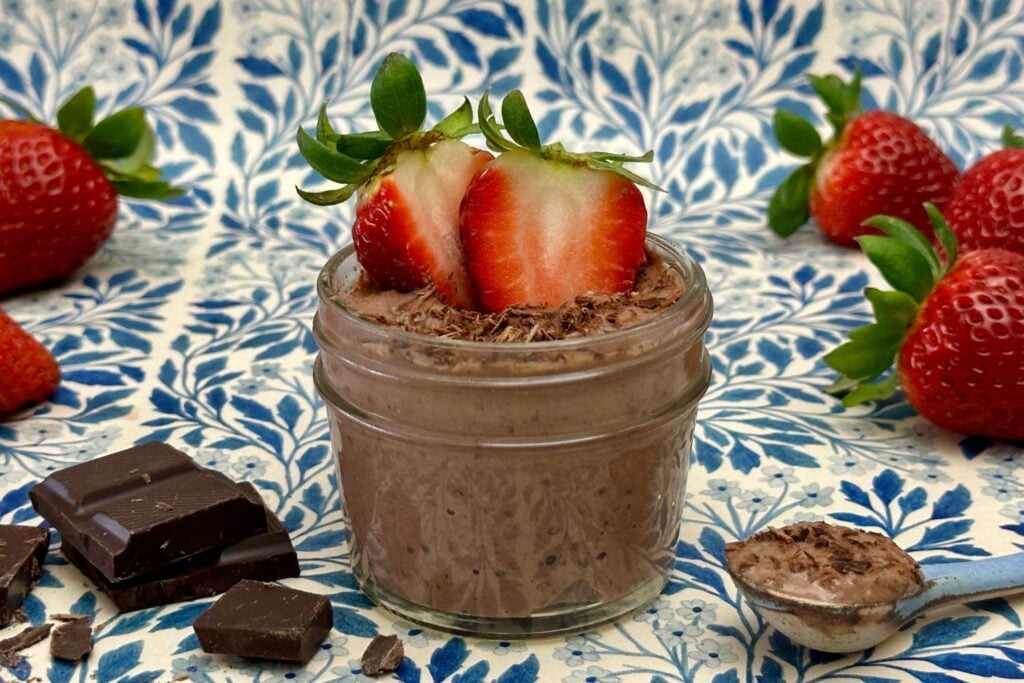 This chocolate pudding is lightened up and made with healthier ingredients than traditional pudding. The cottage cheese gives it a creamy texture, and once you add a thickening agent, such as pudding mix, chia seeds, or half a banana, the texture is similar to pudding. It is a healthier option that is packed with protein and chocolate flavor.