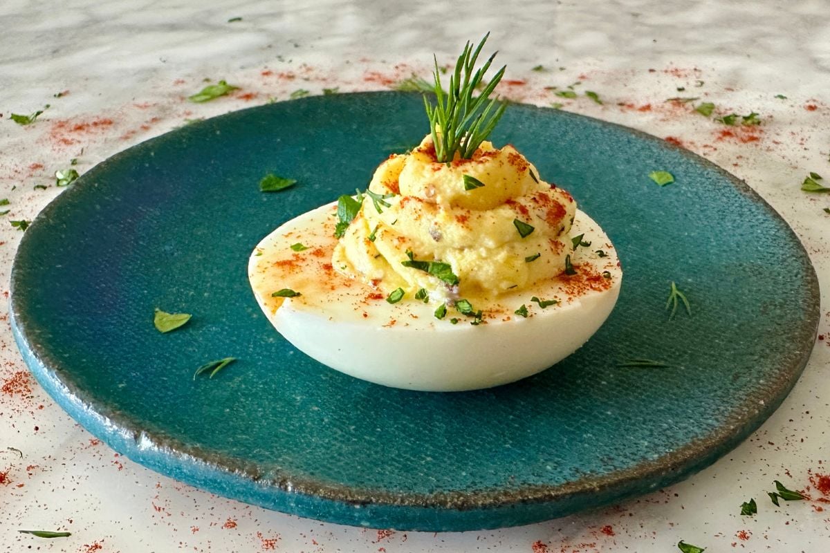 Yes, if you’re making them ahead of time, you can boil the eggs and prepare the filling in advance. Just store the sliced hard-boiled eggs and filling separately, then pipe the filling into the eggs right before serving to keep them fresh and creamy. Also, serve them chilled for the best flavor and texture.