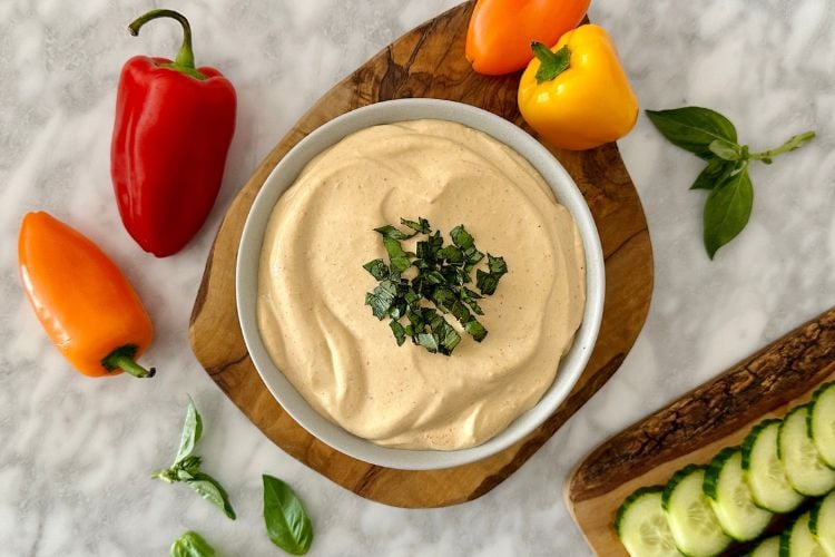 After blending this dip, we like to chill it in the refrigerator for a few hours to let the flavors come together.