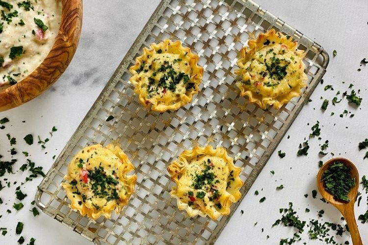 I love this creamy crab dip recipe because it’s so easy to make and can be served hot or cold! You know we love options and we have them for you. Also, you can use phyllo dough cups and make these beautiful little appetizers for your next night in. Hot or cold, this crab dip will be your new favorite appetizer.