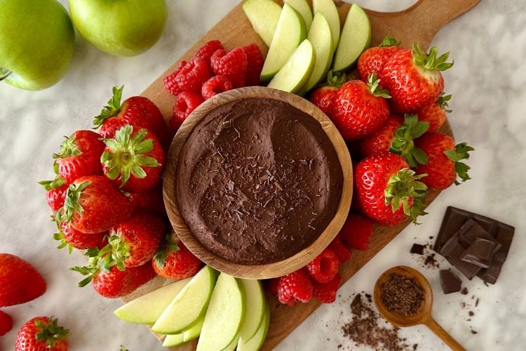 - Fruit: Dip sliced apples, strawberries, raspberries, bananas, or your favorite fruit in this chocolate hummus.