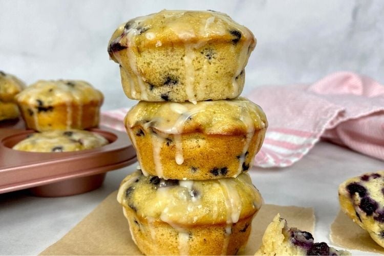 These blueberry muffins are much healthier than store-bought muffins. These muffins are healthy because they are made with natural ingredients and we also included a sugar-free option! We even made a lemon glaze to drizzle on top!