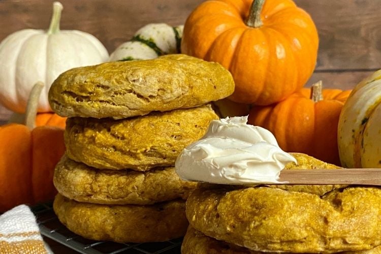 - Serving: We love enjoying these pumpkin bagels with cream cheese, maple butter, and jam.