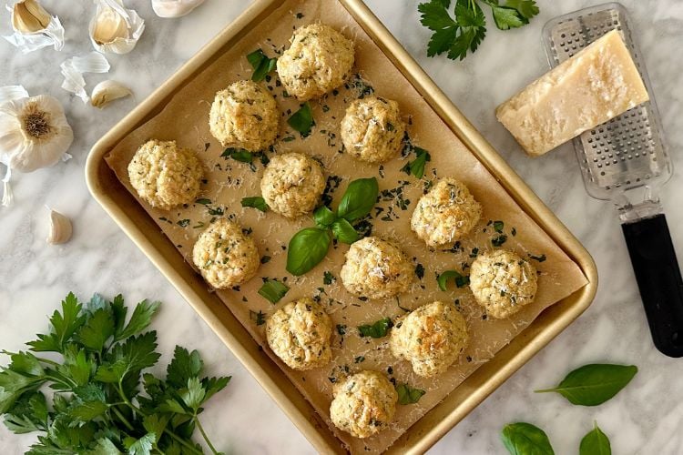 - Cheese: Add grated parmesan cheese to these meatballs for flavor and to help bind them.