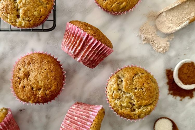 Spotty ripe bananas are best for baking and add sweetness to these muffins.