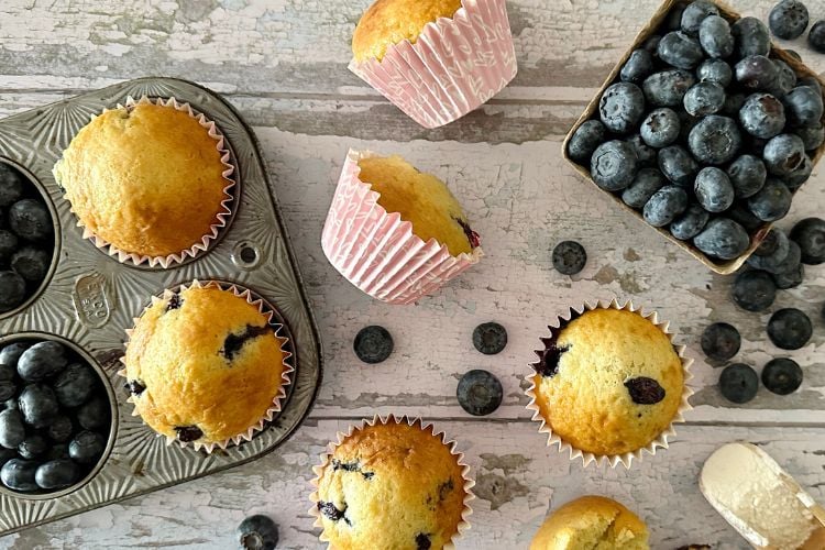 - Frozen Blueberries: If you use frozen blueberries, rinse them and then let them completely dry. Then, toss them in a small amount of flour to remove any moisture and prevent the blueberries from dropping to the bottom of the muffins.