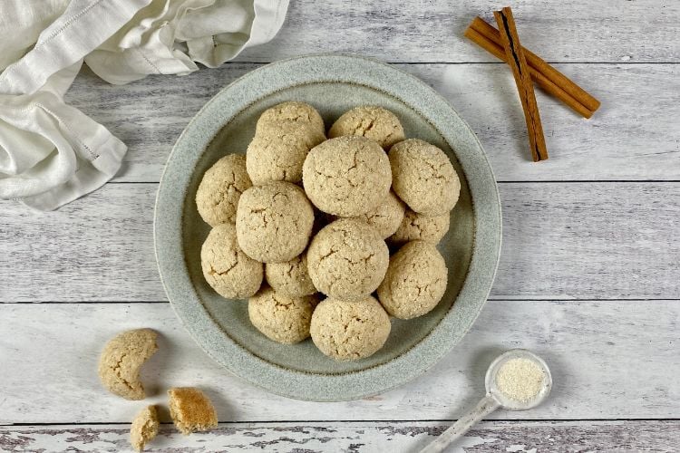 These cinnamon sugar cookies are a healthier option. Most cinnamon sugar cookies are made with a lot of butter, sugar, or oil. These cookies have just two tablespoons of butter. You can’t even tell they are lightened up because the texture and flavor are incredible!
