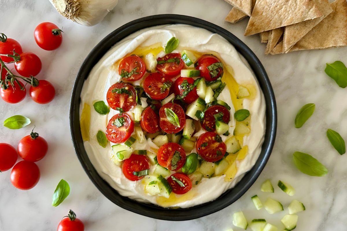 • Fresh & Flavorful: Bright lemon, garlic, and basil paired with juicy tomatoes and crisp cucumber give this dip an incredible flavor.