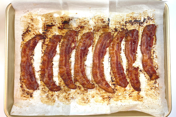 You can meal prep bacon! We love to cook bacon in the oven. To meal prep bacon in the oven, you can cook large amounts of it at once. Then, any leftovers can be stored in the refrigerator for later!