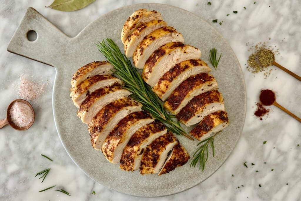 - In a small bowl, mix the Italian herbs, smoked paprika, and garlic powder. Then, lightly spray the chicken breasts with olive oil and evenly rub the spice mixture on the chicken.