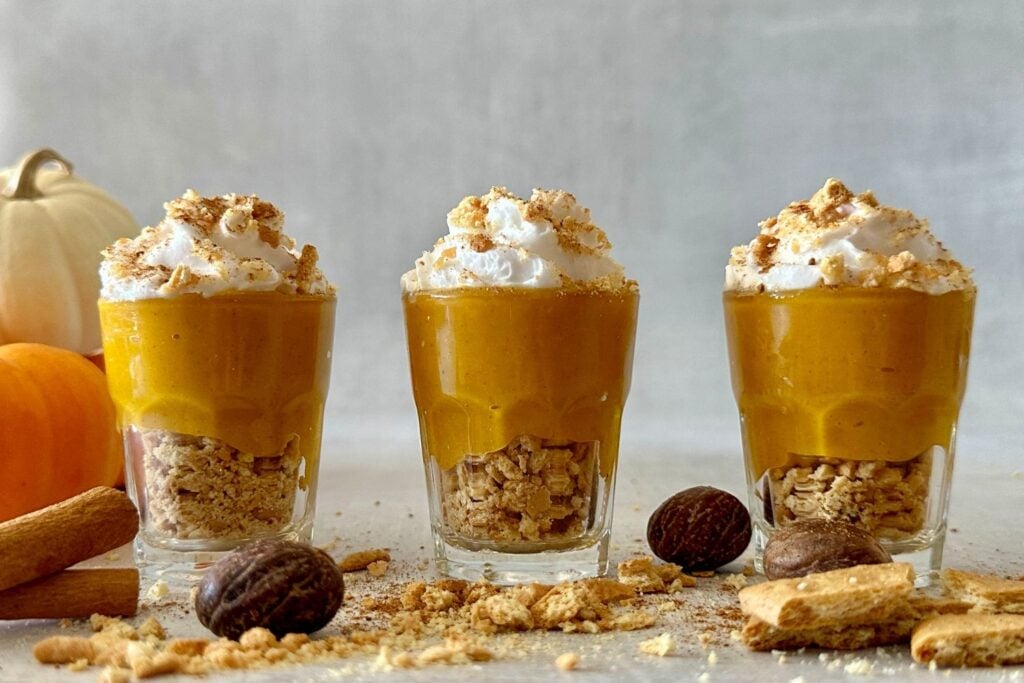 Yes, you can make this recipe ahead of time. Just store the blended pumpkin filling in an airtight container in the refrigerator. Then, assemble when you are ready to serve so the crushed graham crackers don’t get soggy.