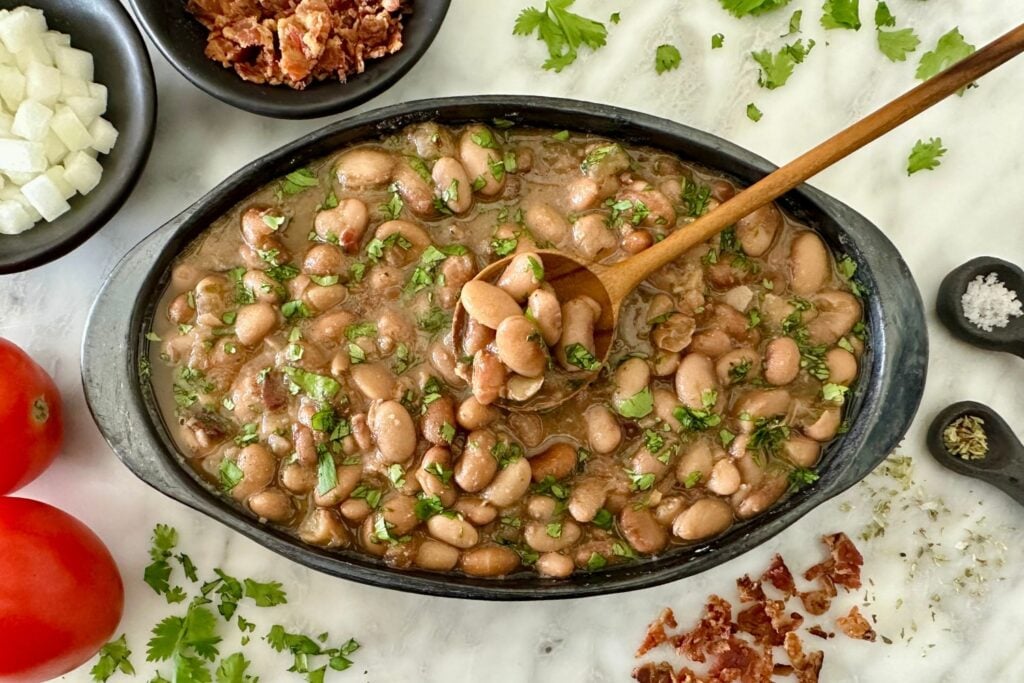 Charro beans are incredibly versatile! Enjoy them on their own or serve them with tacos or rice. They also pair well with grilled meats such as chicken or your favorite Mexican dishes.