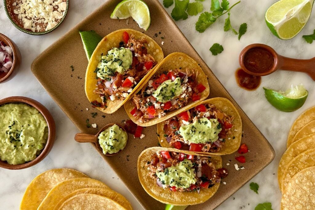 Whether you’re making taco bowls, burritos, or keeping it classic on taco night, these tacos are guaranteed to be a hit. We love how easy they are to make, it’s one of those recipes you’ll find yourself coming back to again and again. It’s so easy to make with simple ingredients. Use your favorite store-bought taco seasoning or try our incredible homemade chicken taco seasoning. Either way, you can’t go wrong with these effortless Crockpot chicken tacos!