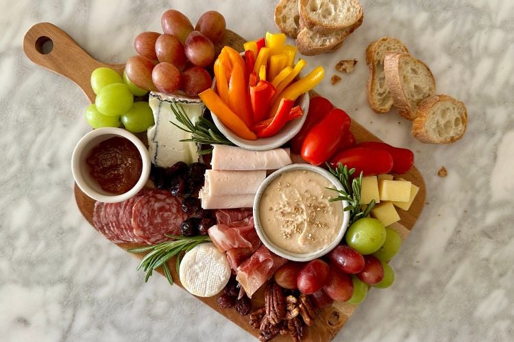 - Bread: Slice a toasted baguette to enjoy with this charcuterie board.