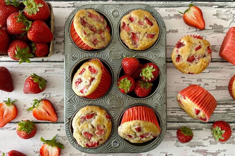 - Add Strawberries On Top: We recommend reserving 1/4 cup of the strawberries to add to the top of the muffins once they are in the muffin pan. It makes these muffins beautiful and shows off the strawberries once they are baked.
