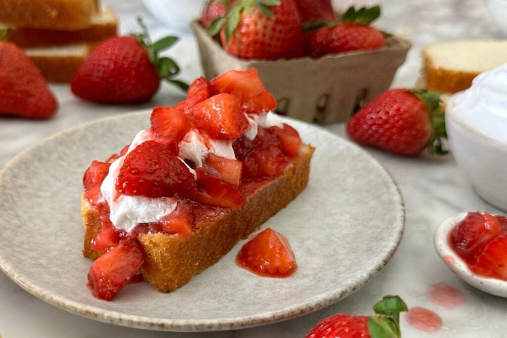 This strawberry shortcake is best enjoyed after making it. You can store any leftover ingredients such as the angel food cake and strawberry mixture for up to two days. Store them in separate airtight containers and store the strawberries in the refrigerator. You can store the angel food cake at room temperature or in the fridge. Then, assemble when you are ready to enjoy it again.