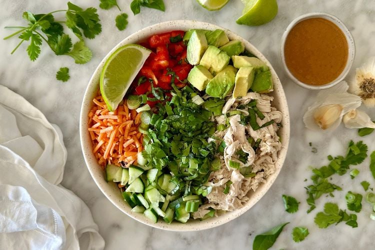 - Gluten-Free Option: To make these Thai chicken bowls gluten-free, use tamari in place of soy sauce when making the peanut sauce.