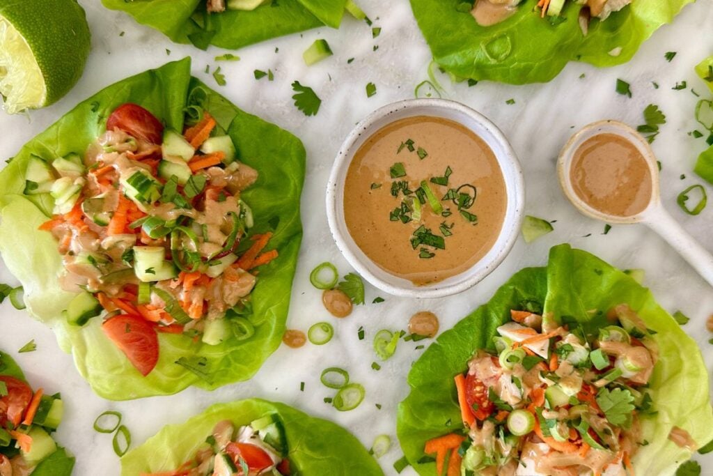 Thai chicken lettuce wraps with peanut sauce