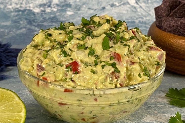 Simple, creamy, and bursting with flavor! Juicy tomatoes, crisp onions, a squeeze of lime, and a bit of Greek yogurt make this guacamole next-level delicious.