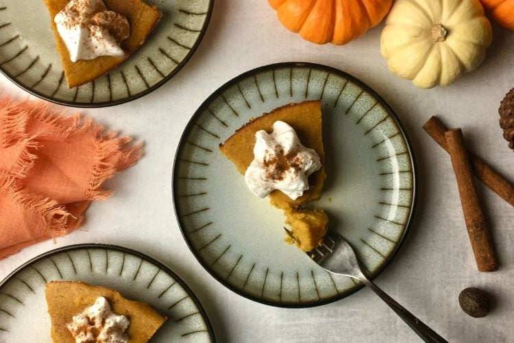 This is the best healthy pumpkin pie recipe! It’s a crustless pumpkin pie made with Greek yogurt for a light, creamy, and delicious twist on the classic dessert.