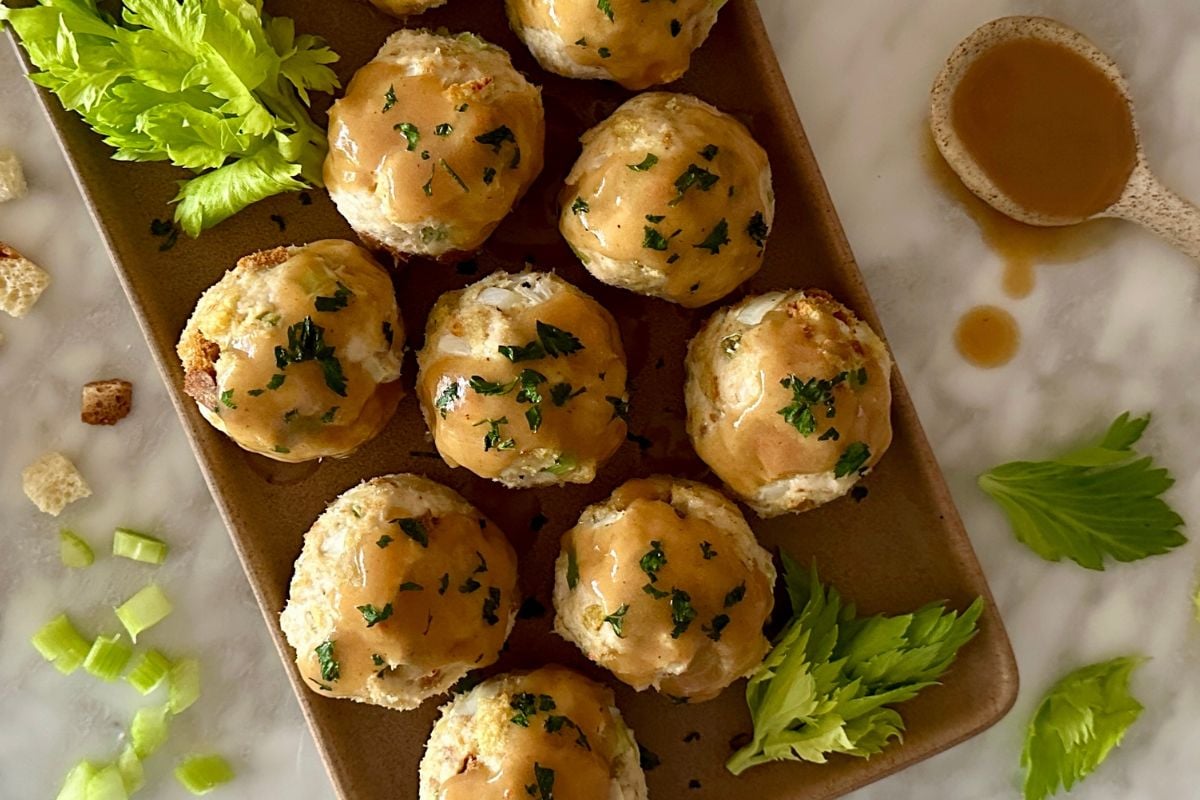 - Gravy: Once cooked, top these turkey stuffing meatballs with homemade gravy and fresh herbs such as chopped parsley.