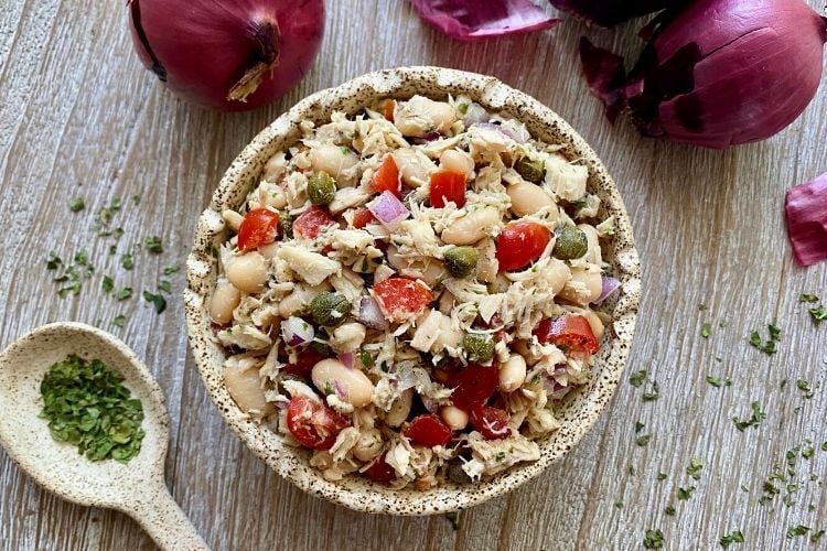 This Tuscan white bean tuna salad recipe is inspired by one of my favorite food memories. Years ago, while traveling through Tuscany, I discovered this incredible white bean tuna salad at a small local restaurant. I loved it so much, I went back three times just to have it again! It was a simple, rustic dish – just tuna and creamy cannellini beans tossed with olive oil, lemon, and fresh herbs but it was bursting with flavor. Ever since that trip, I’ve wanted to recreate a version that brings back those delicious memories.